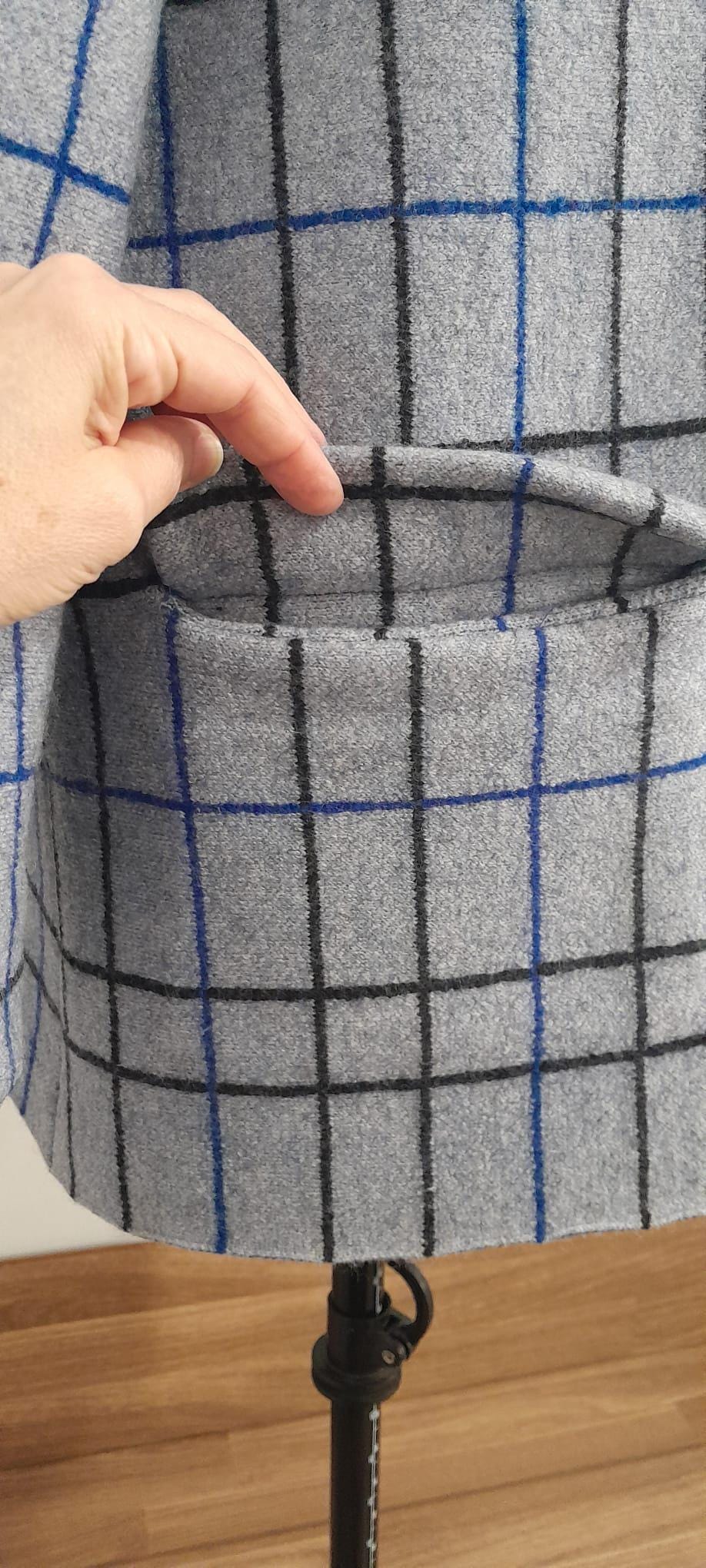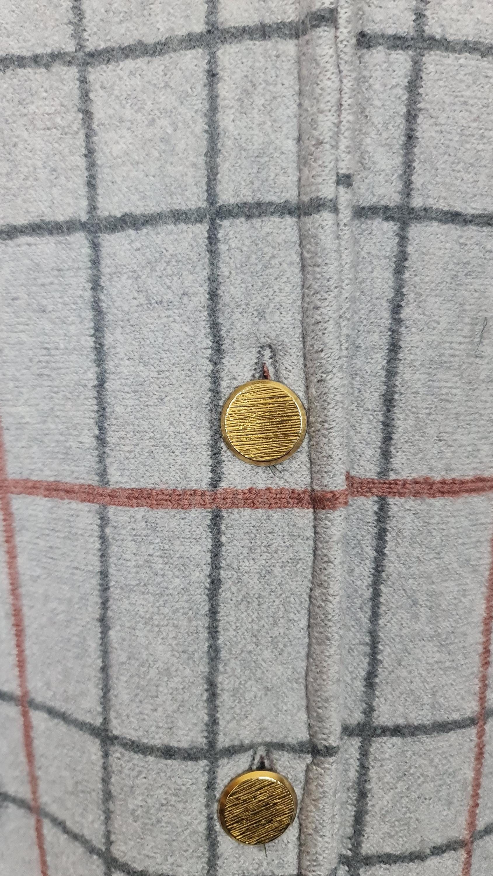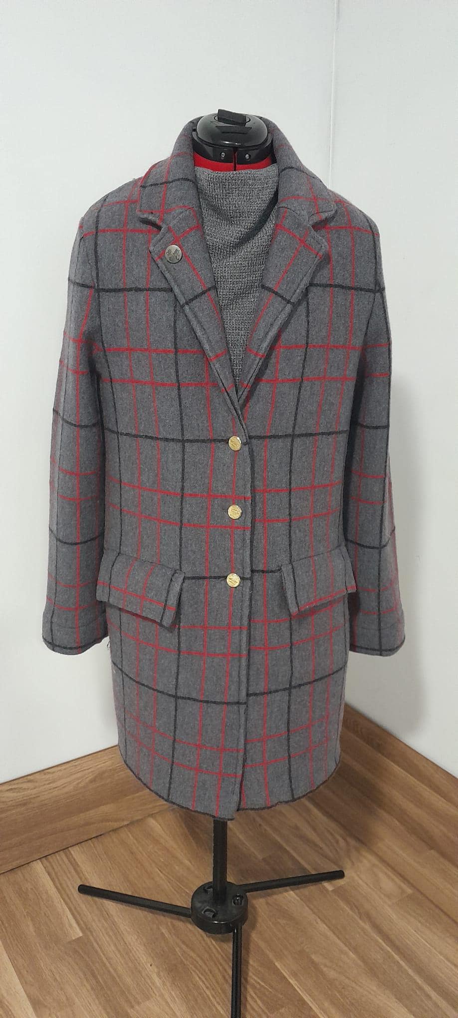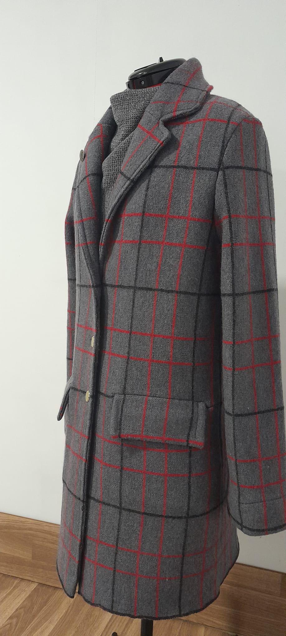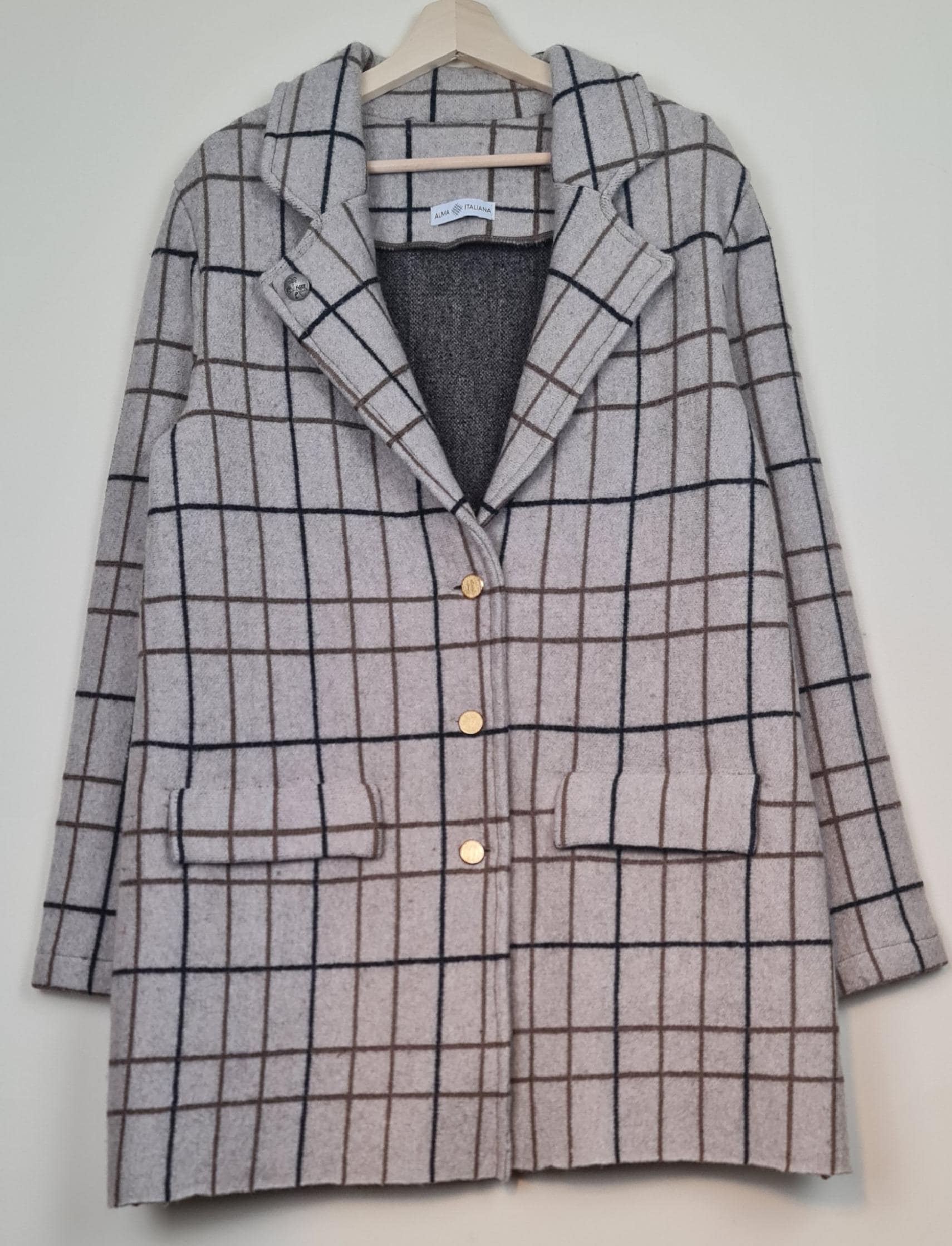 It features a timeless grid pattern in neutral tones (grey, charcoal, and blue), making it the most versatile piece in your wardrobe: perfect for a professional look over a suit or to elevate a casual weekend outfit.