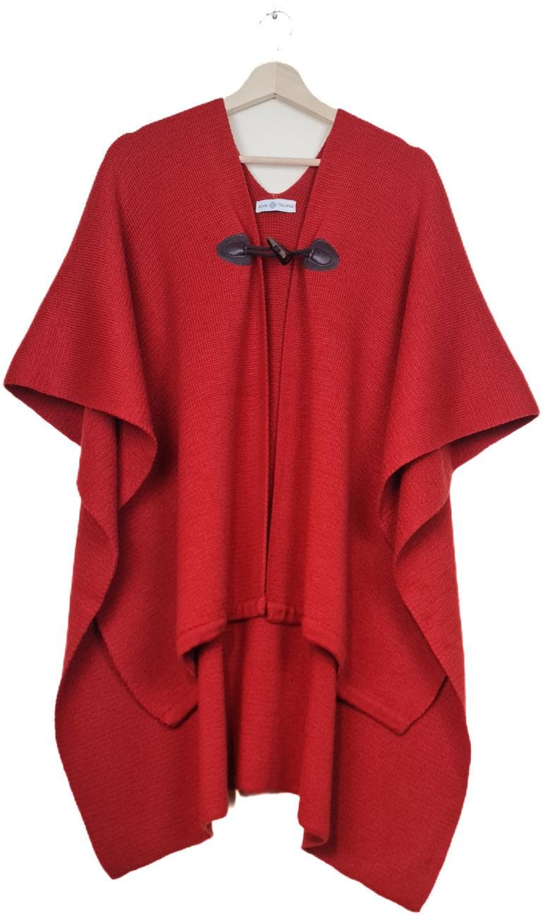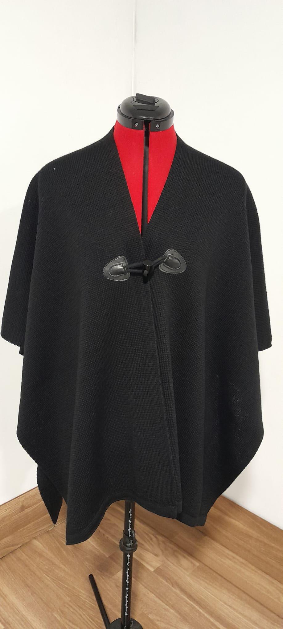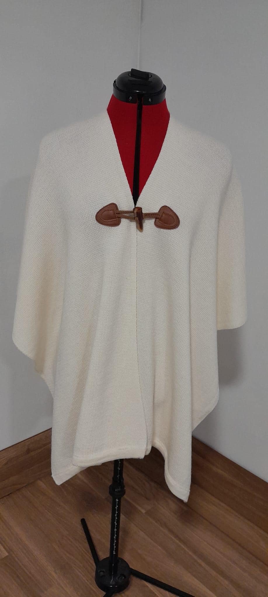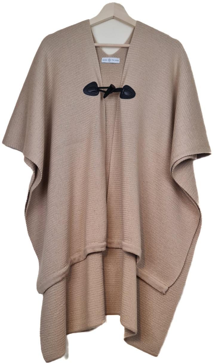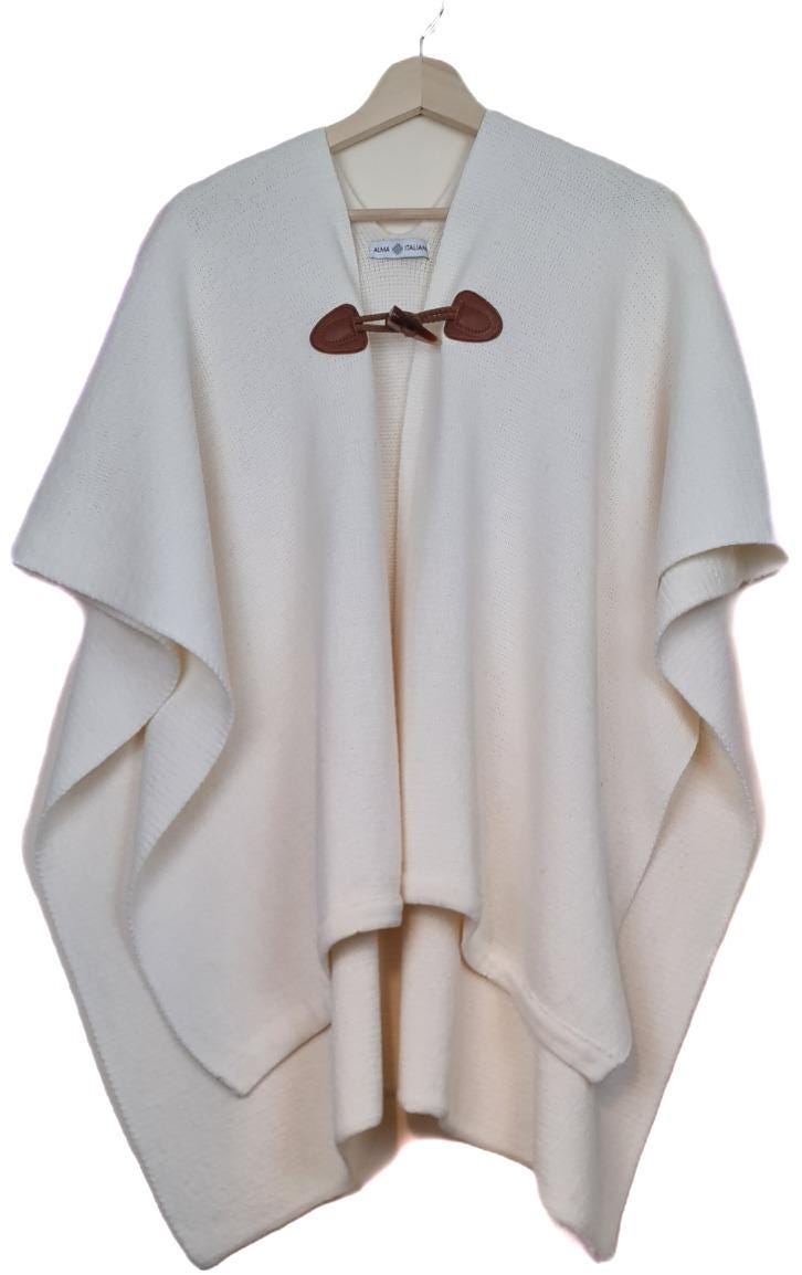 Merino Wool Ruana: Versatility and Timeless Elegance Elegant ruana crafted from soft merino wool, renowned for its superior warmth and comfortable feel. It features a timeless design and sophisticated leather buckle closure. An extremely versatile garment, it's ideal for complementing any style, offering a refined silhouette and lightweight warmth. Available in a variety of colors, this essential piece combines luxury, functionality, and style.