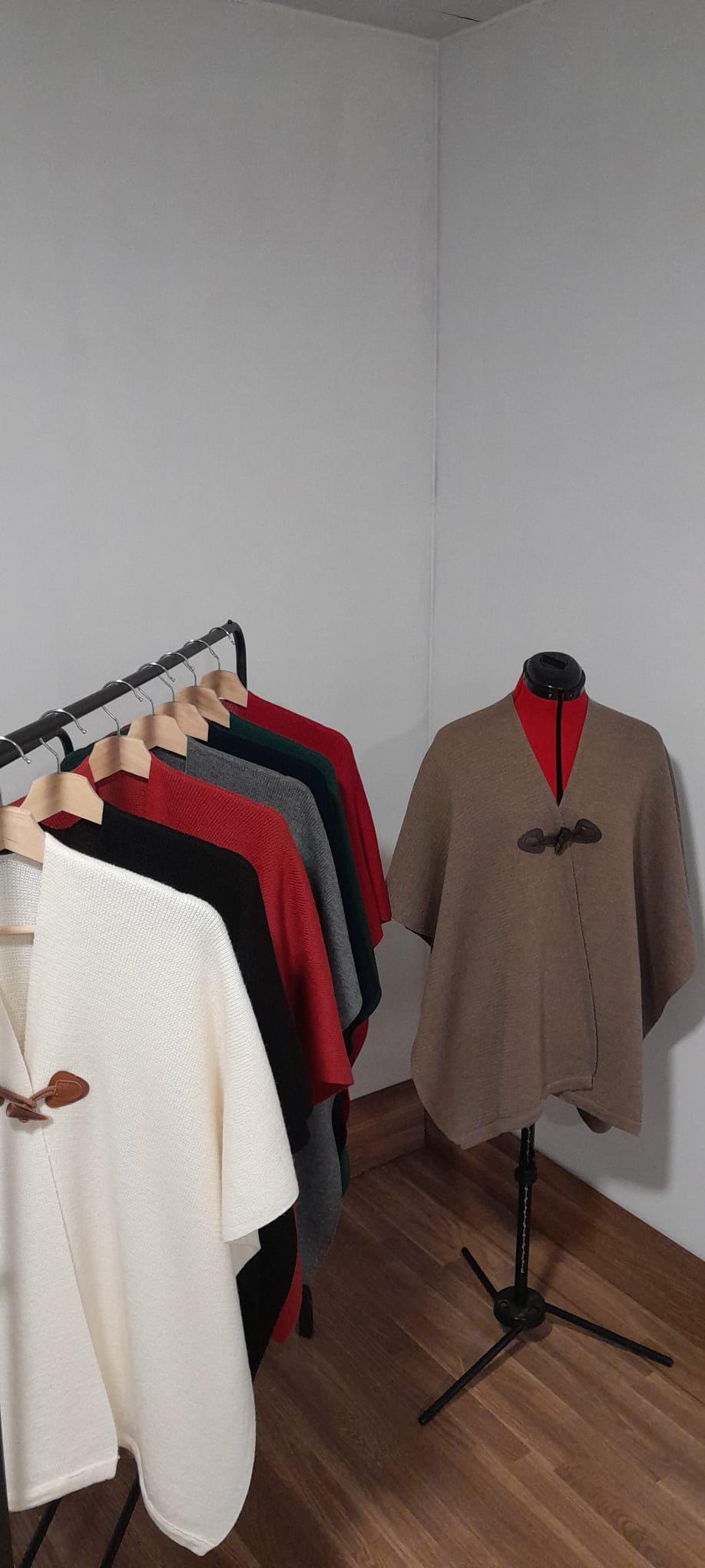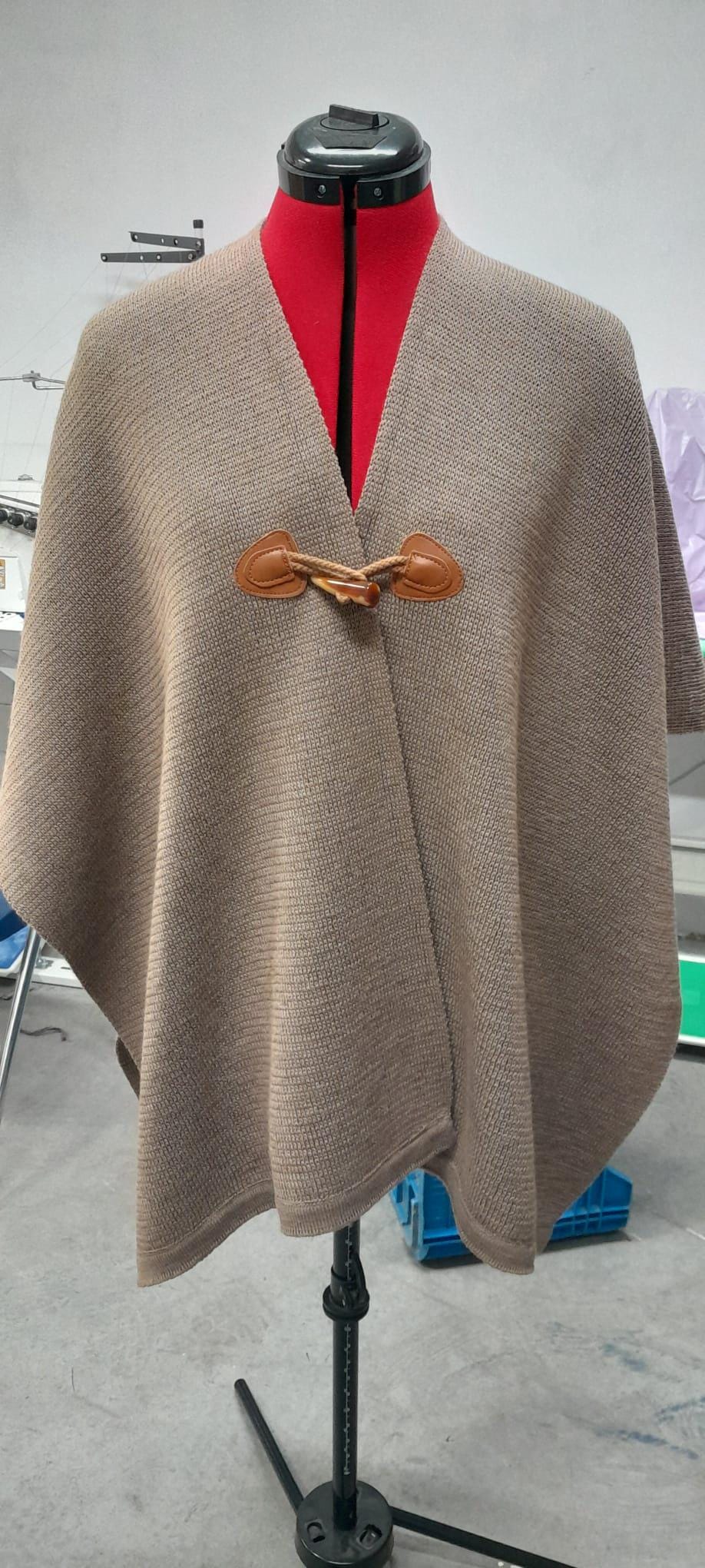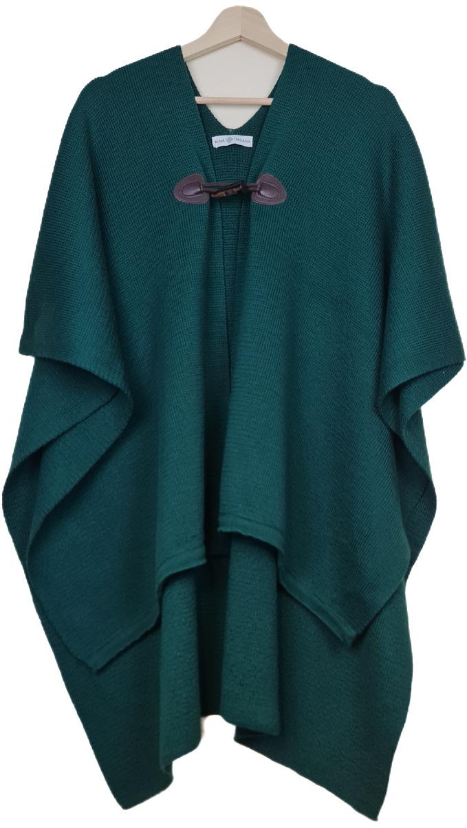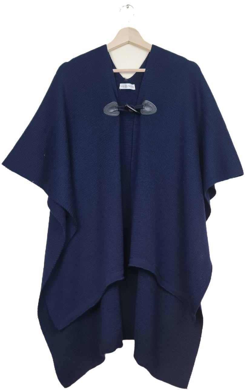 Merino Wool Ruana: Versatility and Timeless Elegance Elegant ruana crafted from soft merino wool, renowned for its superior warmth and comfortable feel. It features a timeless design and sophisticated leather buckle closure. An extremely versatile garment, it's ideal for complementing any style, offering a refined silhouette and lightweight warmth. Available in a variety of colors, this essential piece combines luxury, functionality, and style.