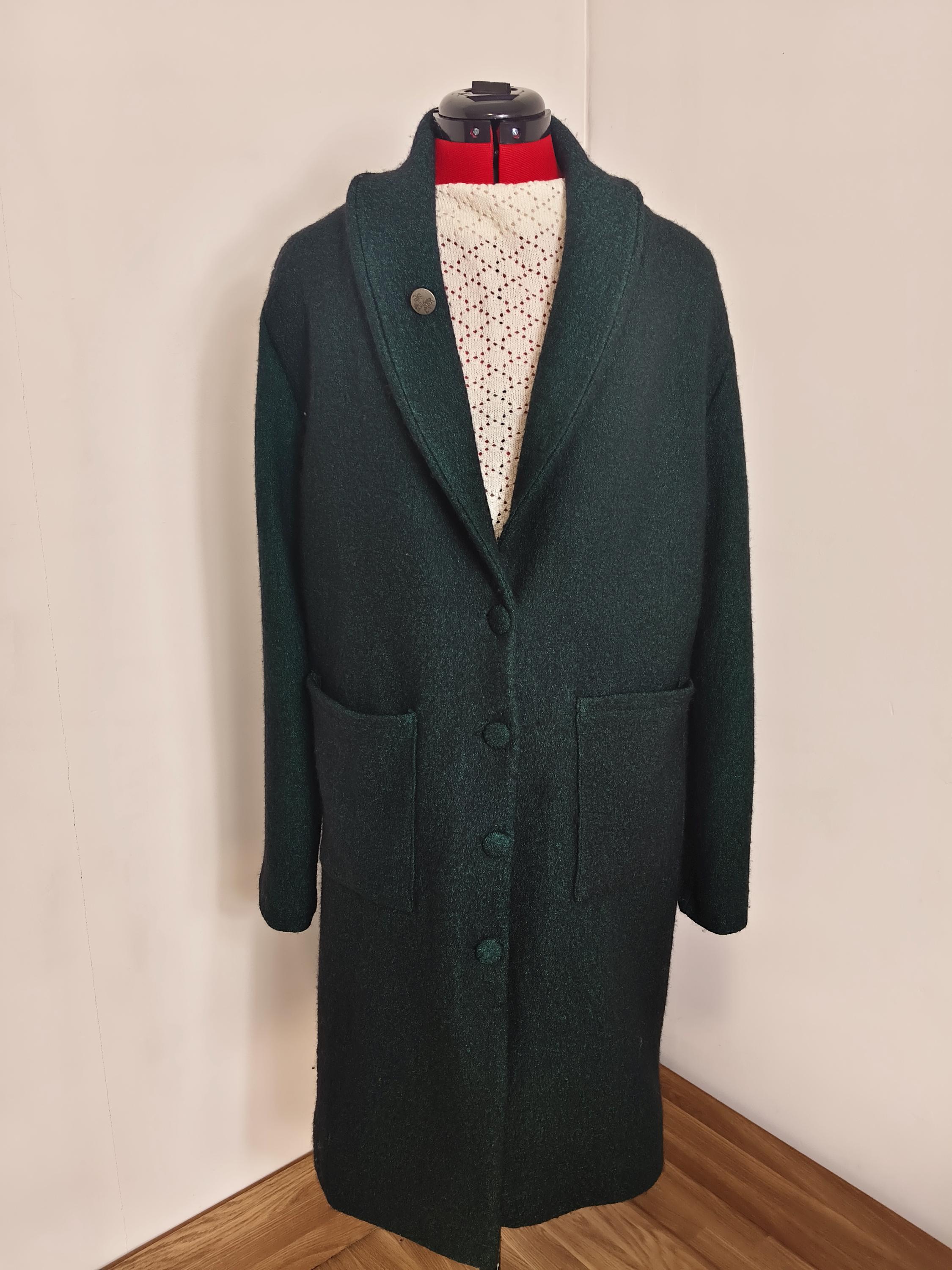 Warmth meets high-quality artisanal tailoring. This coat is a designer piece that celebrates the purity of Merino wool and its enveloping design. Its most distinctive feature is the shawl collar, a continuous and elegant lapel that extends from the nape of the neck to the chest, lending an air of classic sophistication and extra protection against the cold with unparalleled softness. Because it is entirely handcrafted, the coat has an organic structure that adapts to the body without the stiffness of industrially produced garments. The merino wool guarantees a luxurious tactile experience: it is extremely lightweight, non-itchy, and offers superior natural thermal insulation.