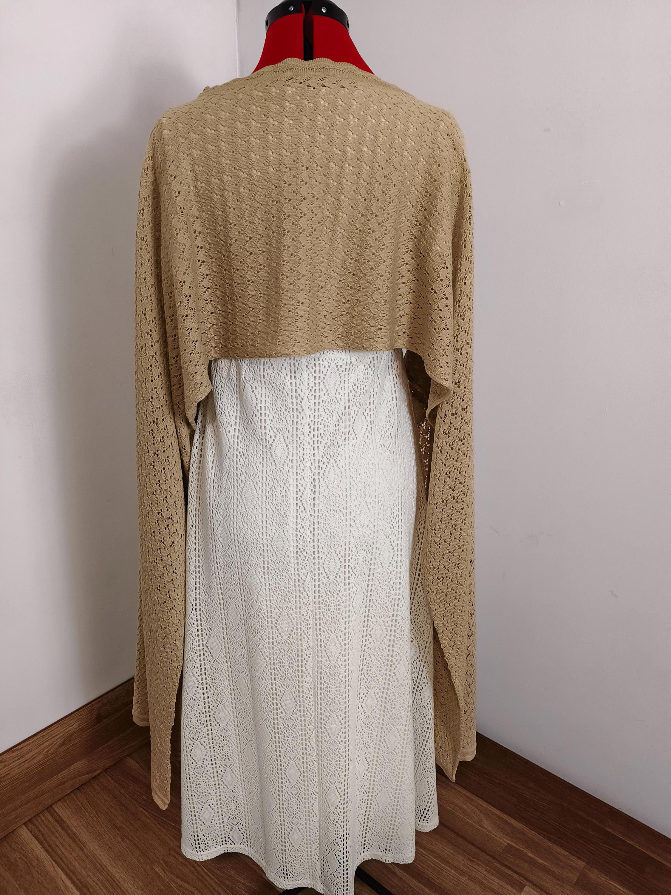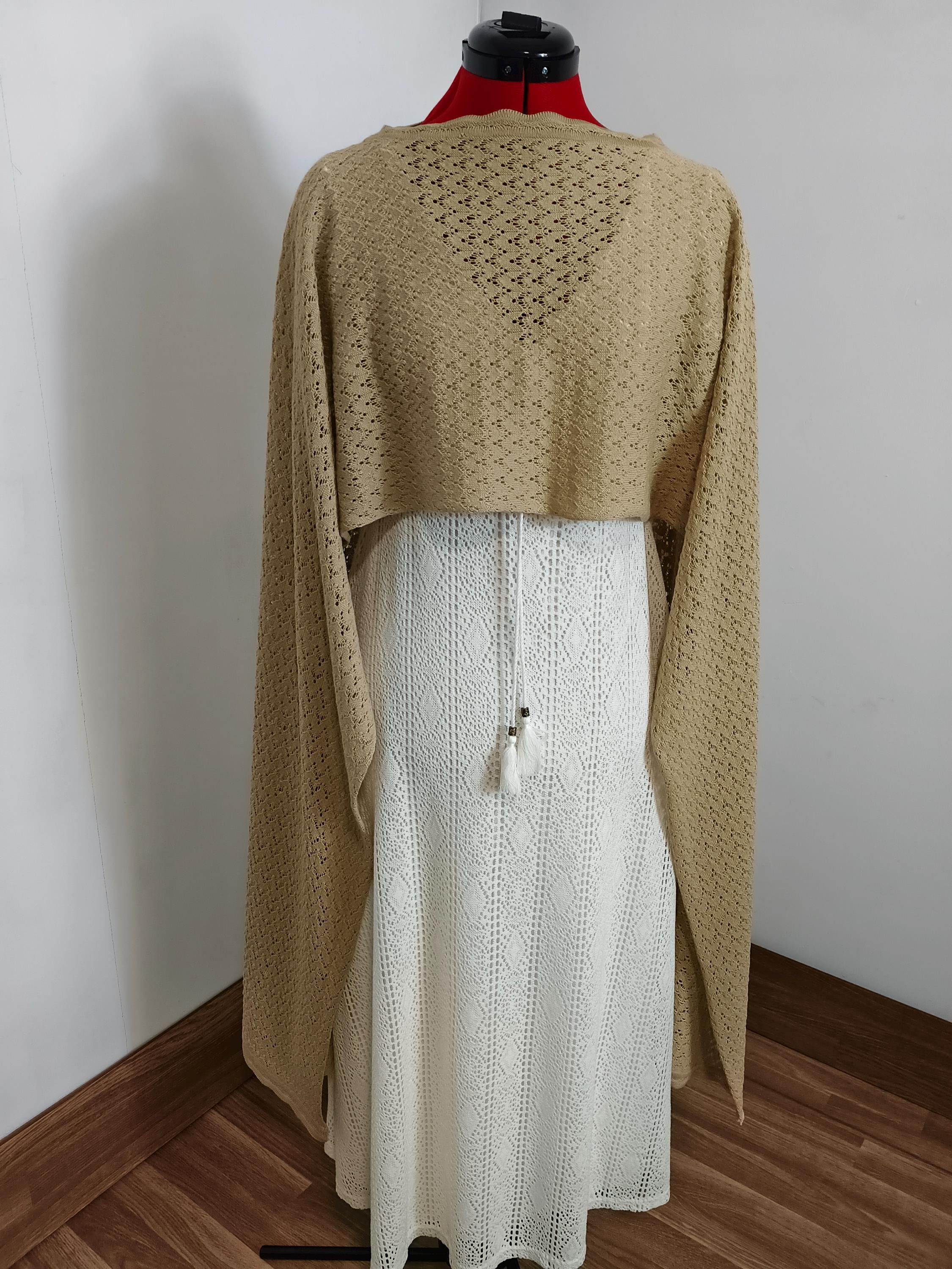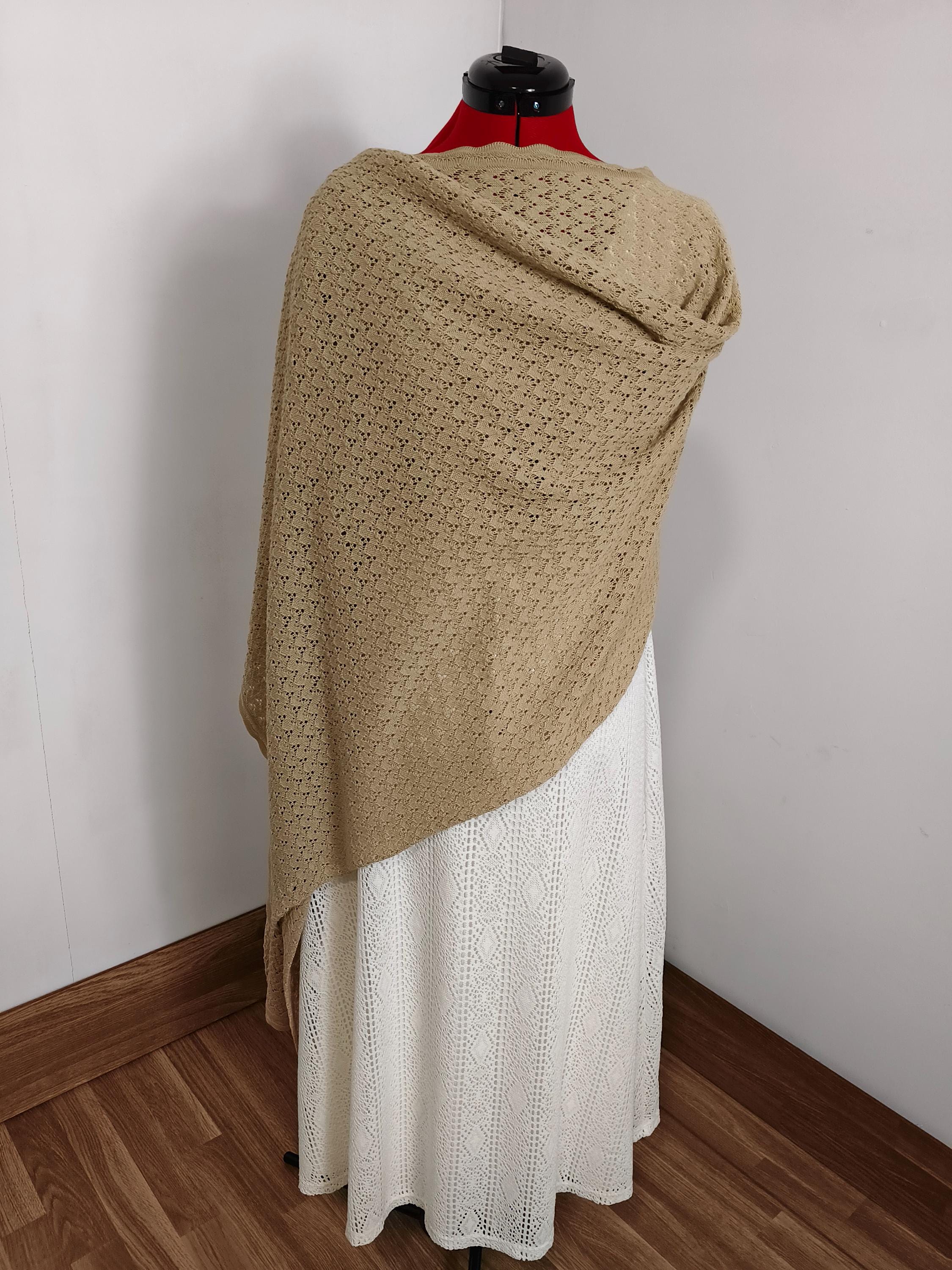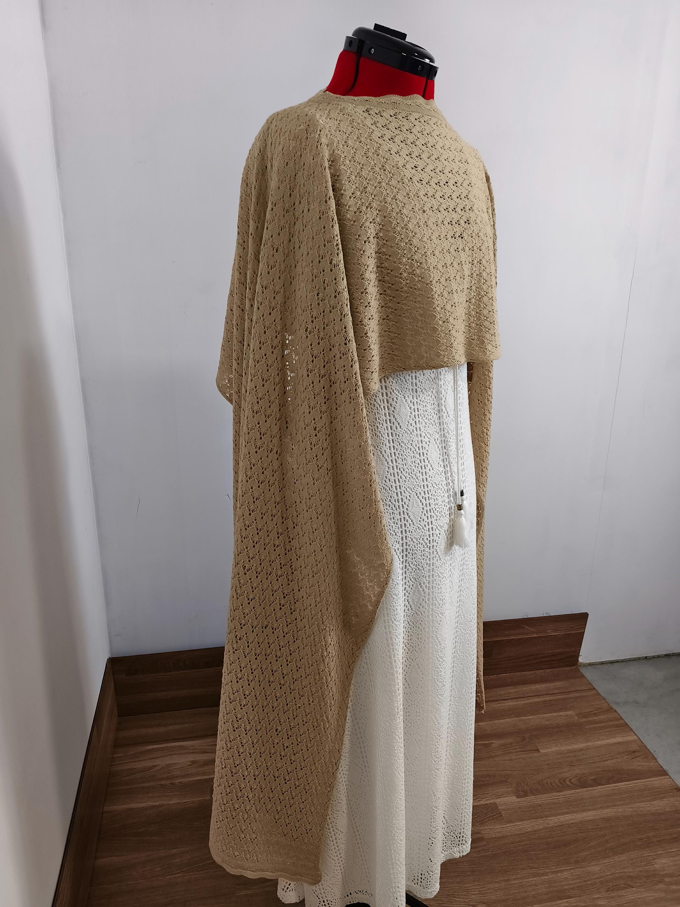 This multifunctional design features an asymmetrical cape, short in the front and long at the sides. Its flowing drape allows it to adapt naturally to the body, similar to how a mantilla would be draped over the shoulders. An elegant accessory for evening gowns or formal occasions. Length 220cm Width 70cm